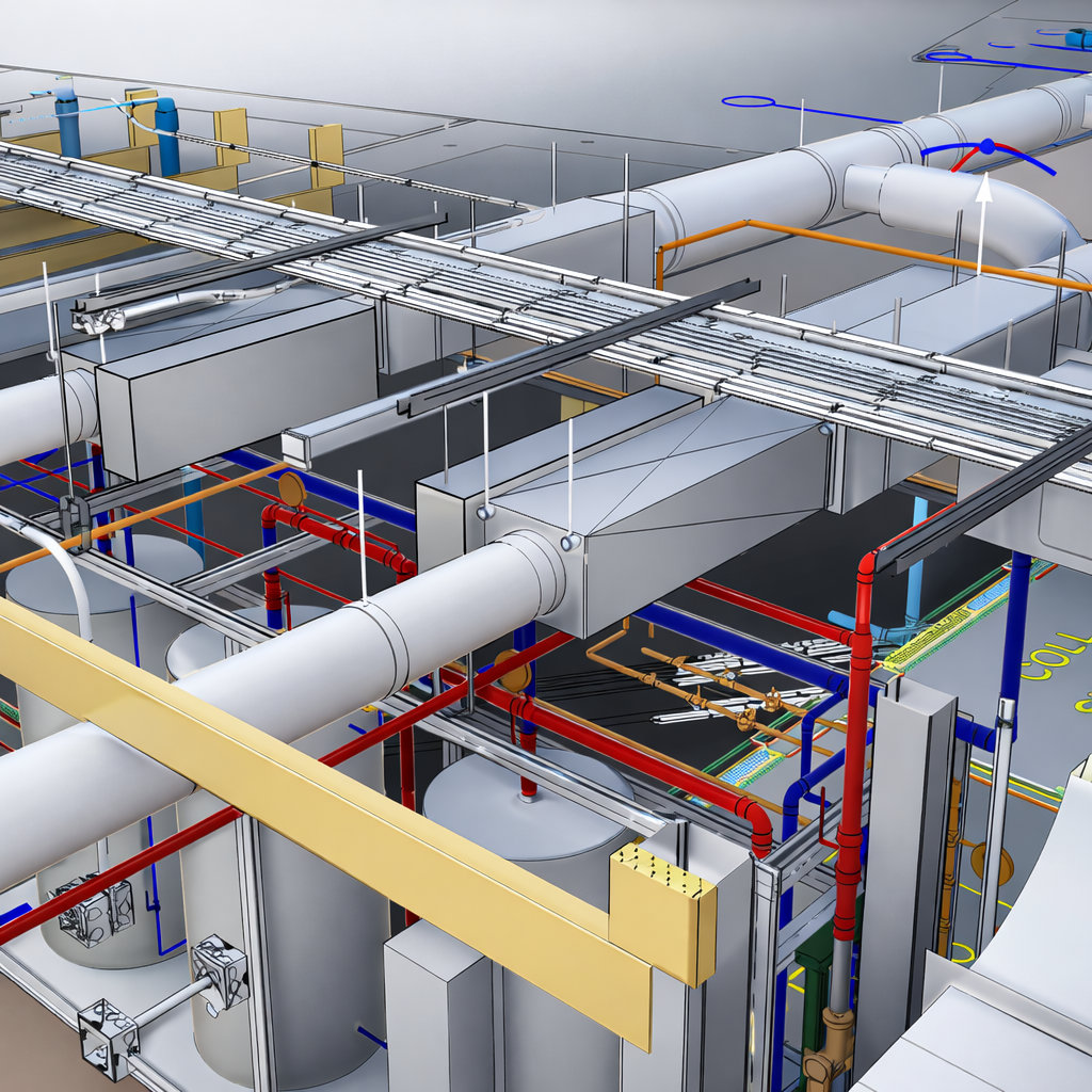 Our MEP BIM (Mechanical and Plumbing) services provide fully coordinated and clash-free models that streamline the entire building lifecycle—from concept through construction and facility management. We develop intelligent, data-rich 3D models that integrate mechanical systems (HVAC), electrical layouts, and plumbing infrastructure in alignment with project requirements and ISO 19650 standards.