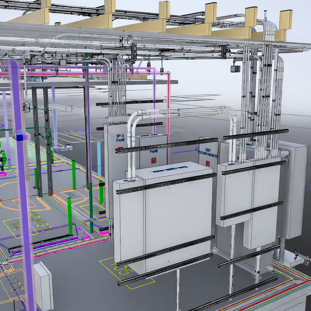 We deliver precise Electrical BIM (Building Information Modeling) solutions that streamline design, coordination, and documentation across all phases of construction. Our services include detailed modeling of electrical systems such as lighting, power distribution, fire alarm, data, and security—fully aligned with project specifications and international standards like ISO 19650.